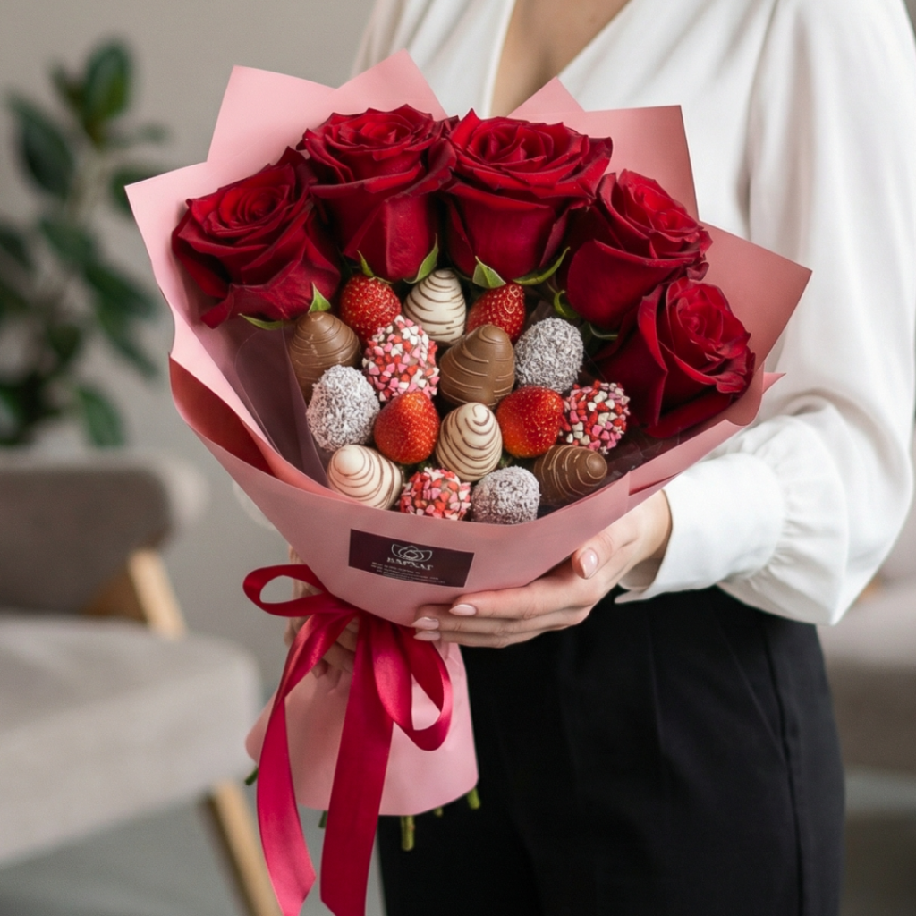 • сладкому букету из клубники в шоколаде,