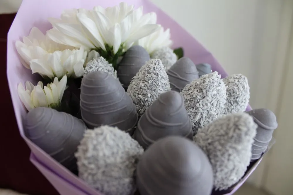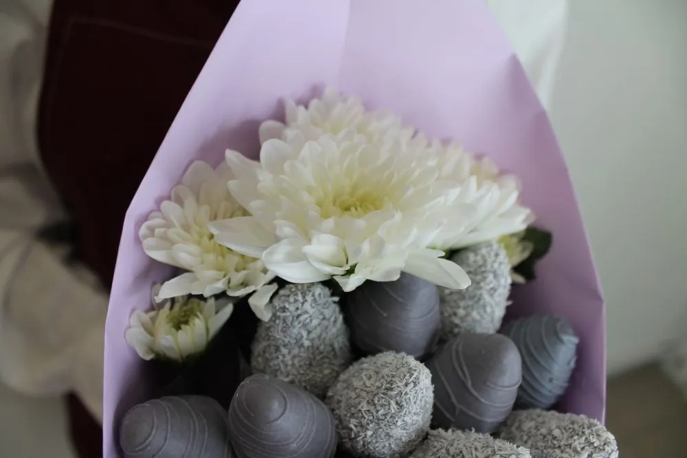 Клубнично-цветочные букеты
