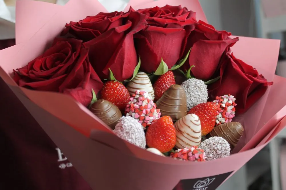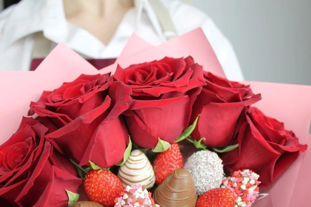 Клубнично-цветочные букеты