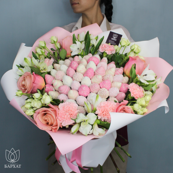 Клубнично-цветочные букеты
