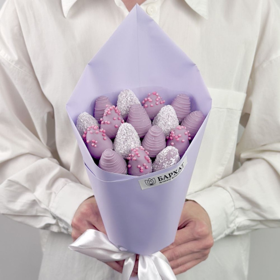 *Обратите внимание: изображение в карточке товара носит иллюстративный характер — реальный букет может незначительно отличаться от фото (например, по размеру клубники, форме и сборке). Точные размеры букета указаны в карточке товара.