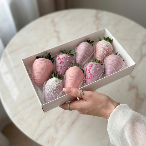 Коробочка клубники в шоколаде — отличный подарок бабушке, маме, любимой женщине, жене, подруге, сестре, друзьям и коллеге.