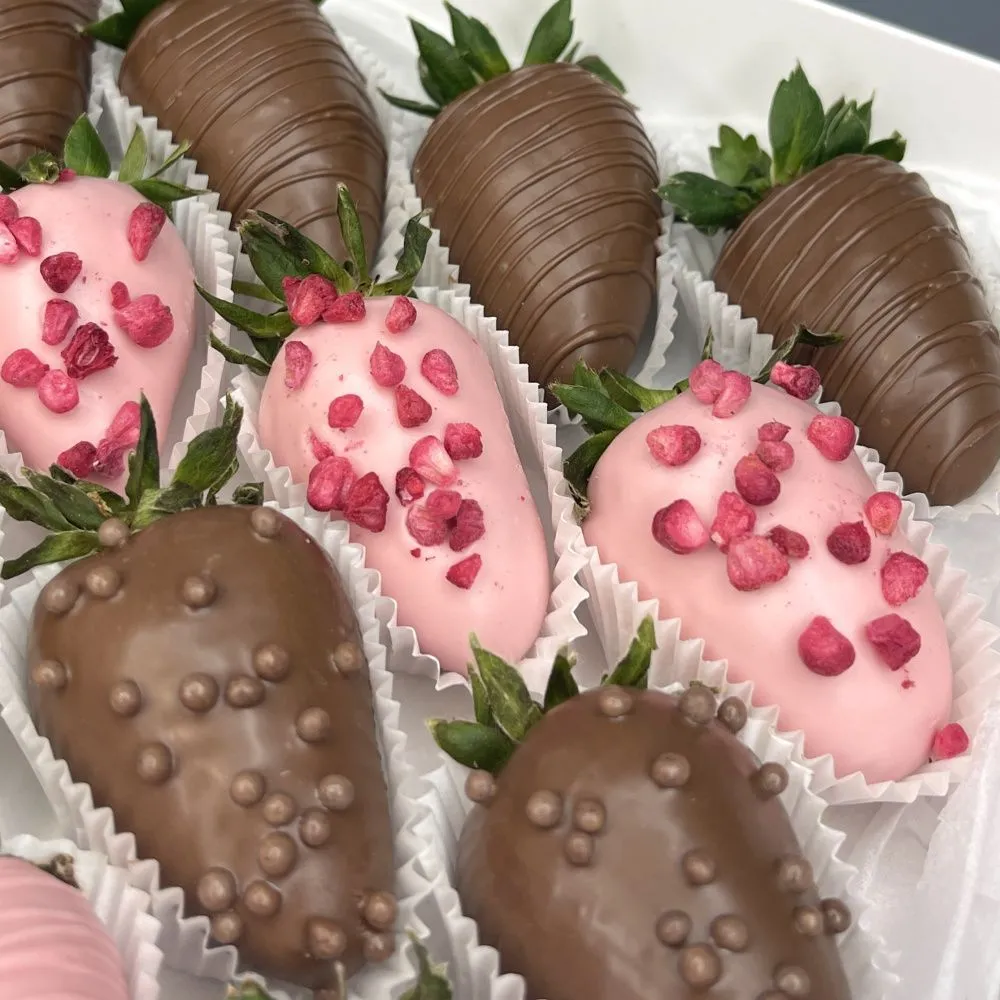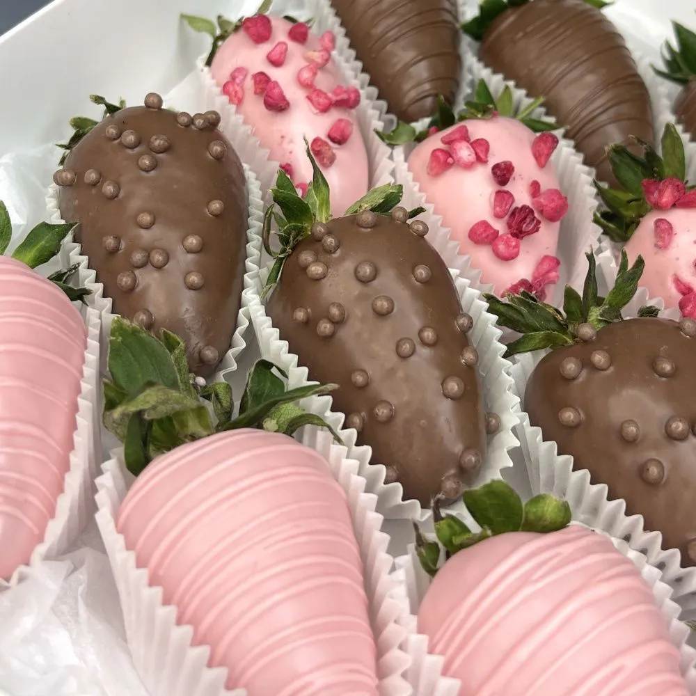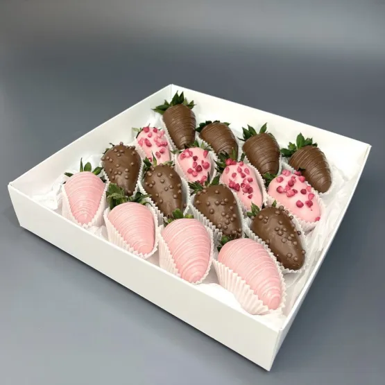 Мы собираем клубничные букеты по весу, а не по штукам. Количество, форма и размер ягод могут отличаться — ведь каждая ягода уникальна.