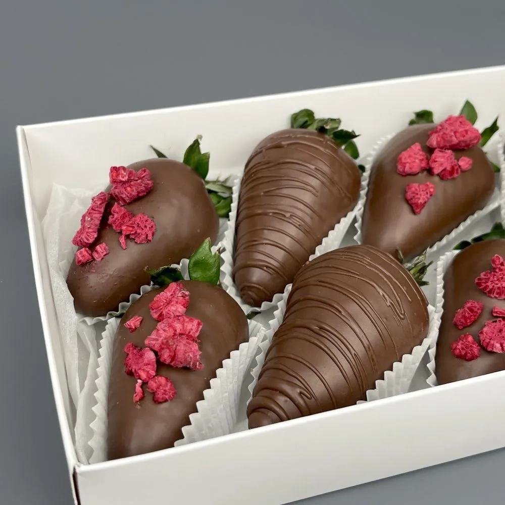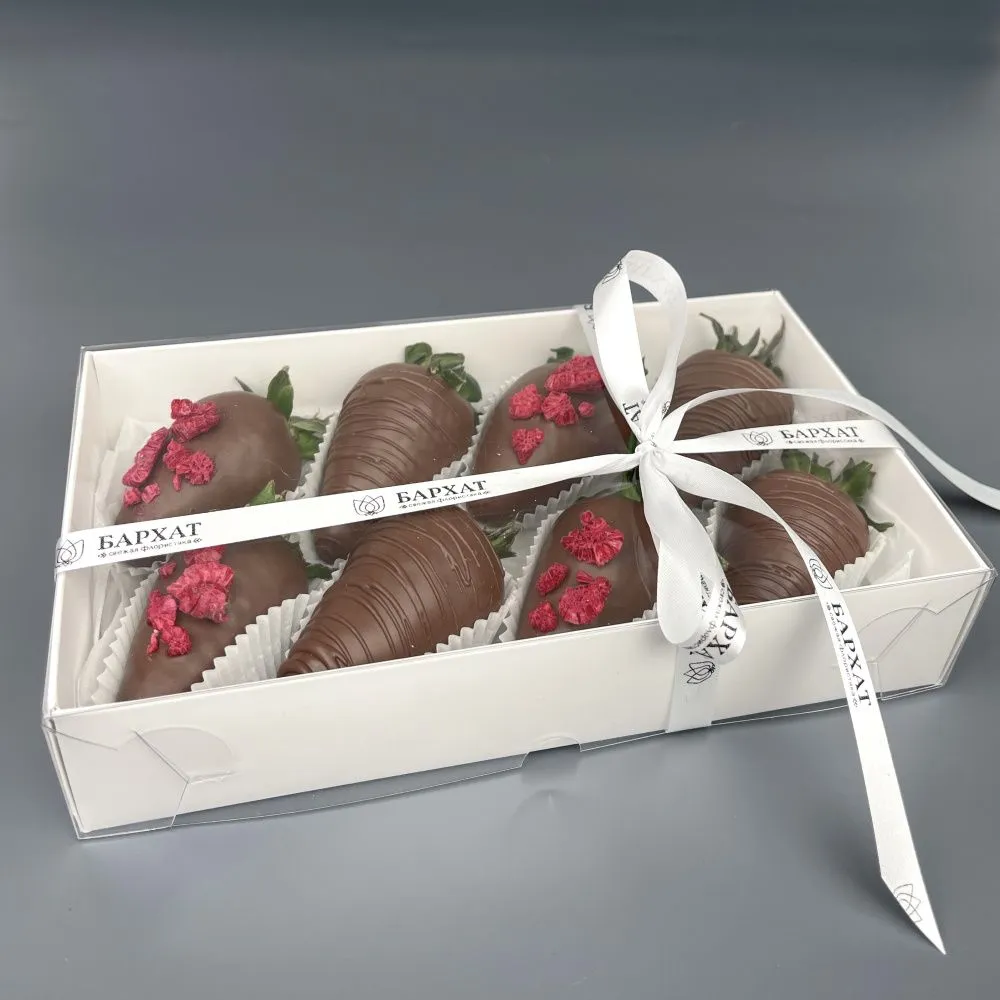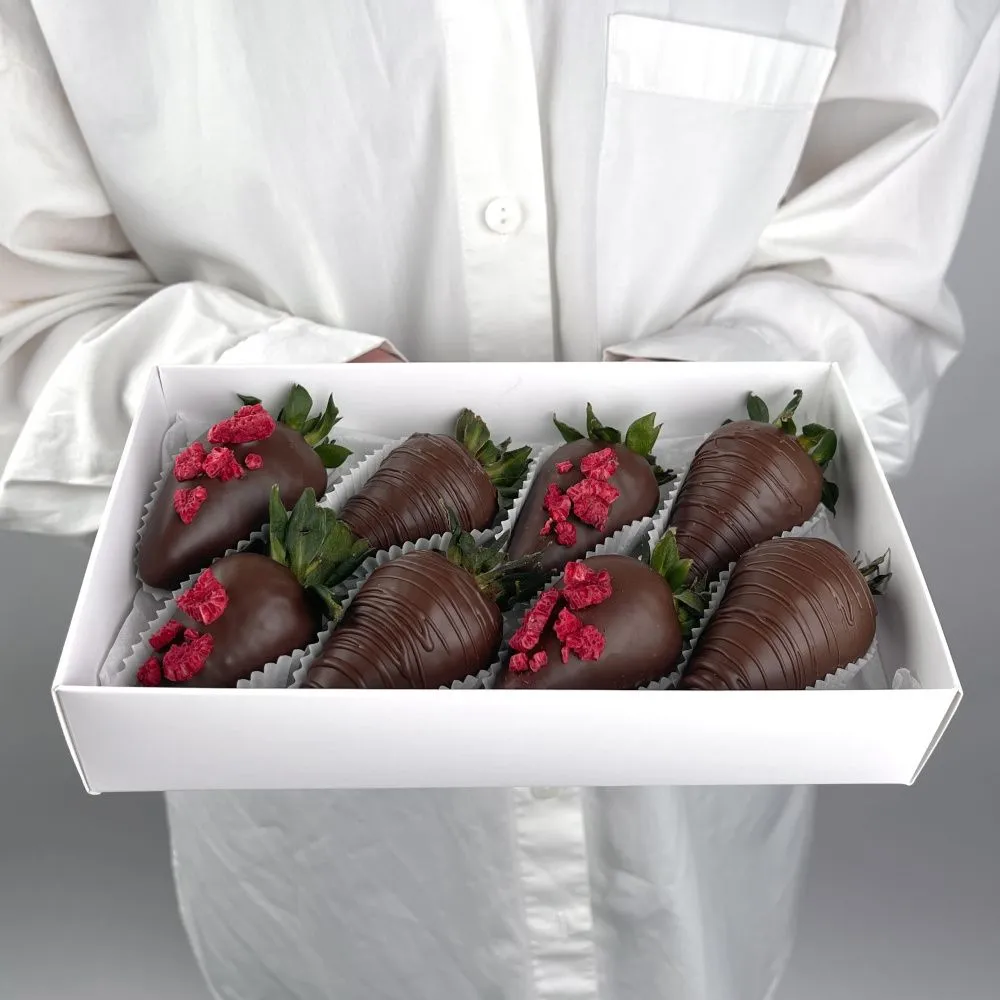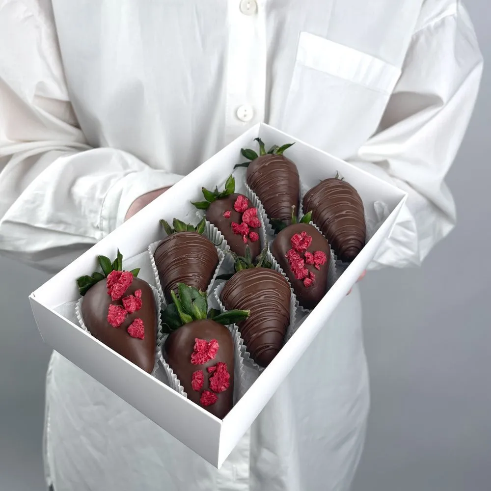 Состав: клубника в шоколаде 8 шт. Свежая клубника в бельгийском шоколаде — идеальный способ выразить чувства: ко дню рождения, годовщине, 8 Марта, 14 Февраля, Дню матери, Дню учителя, Дню бабушки и дедушки или просто в знак внимания и заботы. Фирменная открытка-инструкция по хранению — в подарок. Коробочка клубники в шоколаде — отличный подарок бабушке, маме, любимой женщине, жене, подруге, сестре, друзьям и коллеге.
