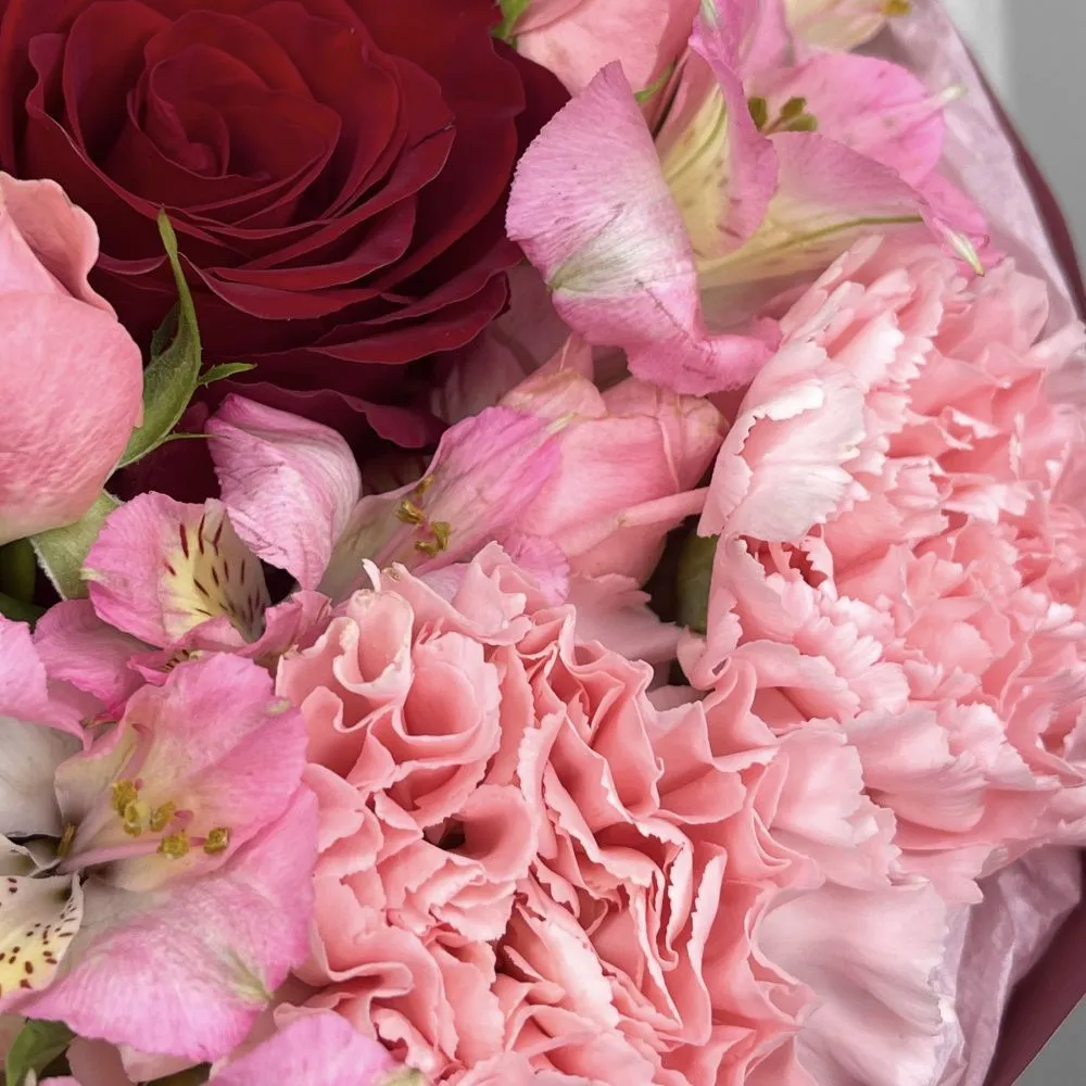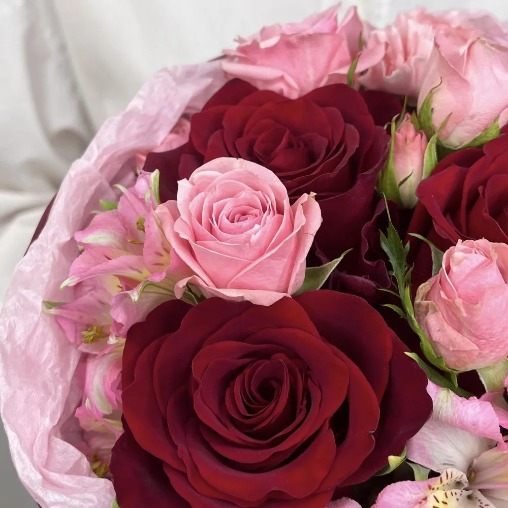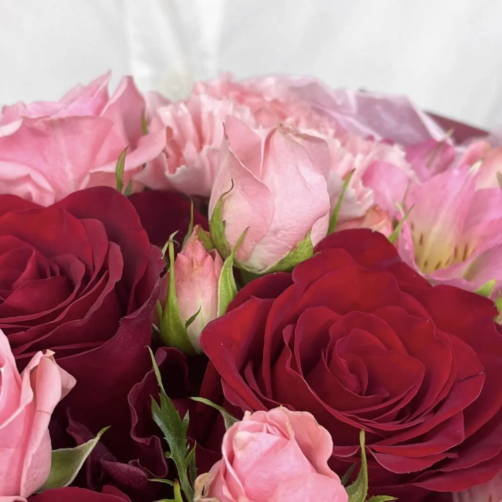 Сорт и оттенок могут незначительно отличаться — если нужных цветов не будет, флорист подберет подходящую замену.