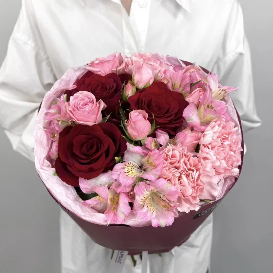 Мы стараемся собрать букет максимально похожим на фото. Возможны небольшие отличия в оттенках.
