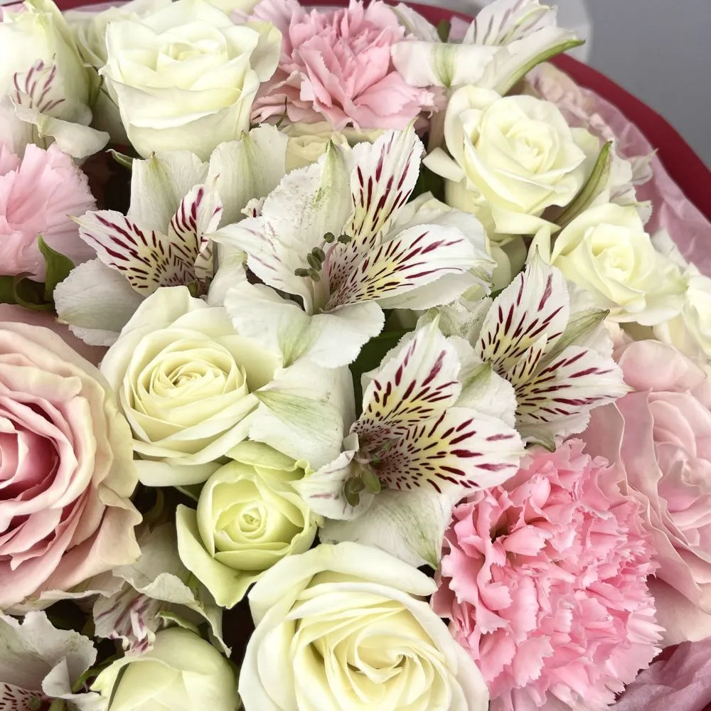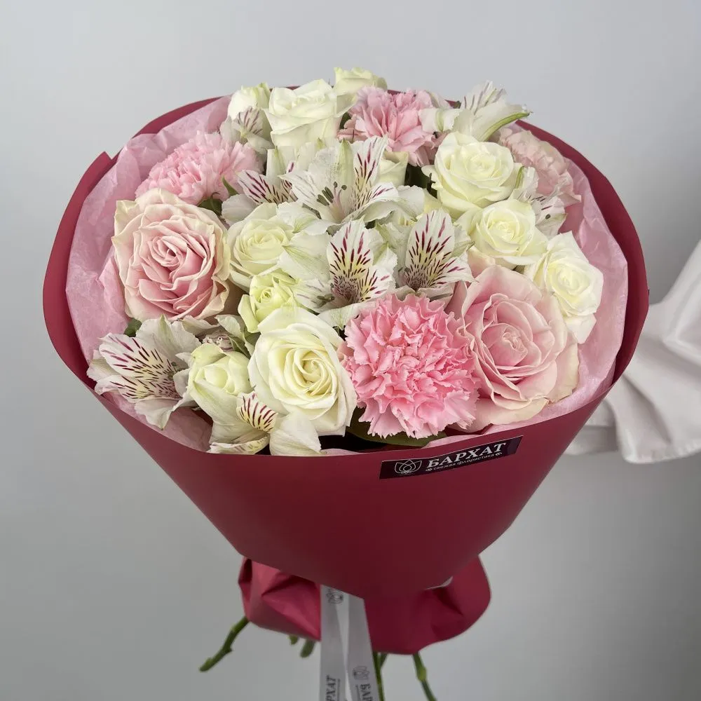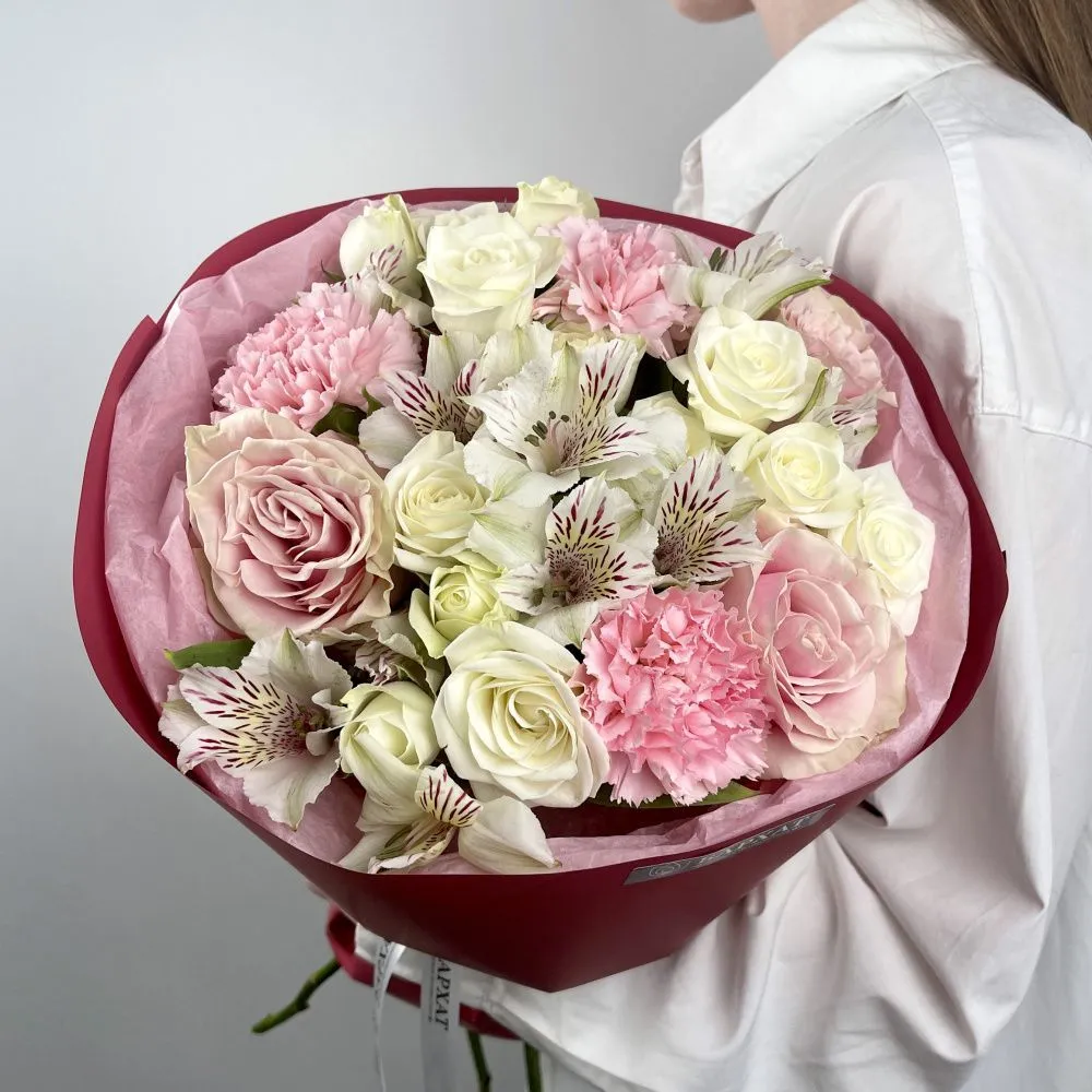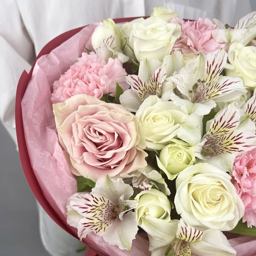 Роза кустовая, Альстромерия, Роза одноголовая, Гвоздика