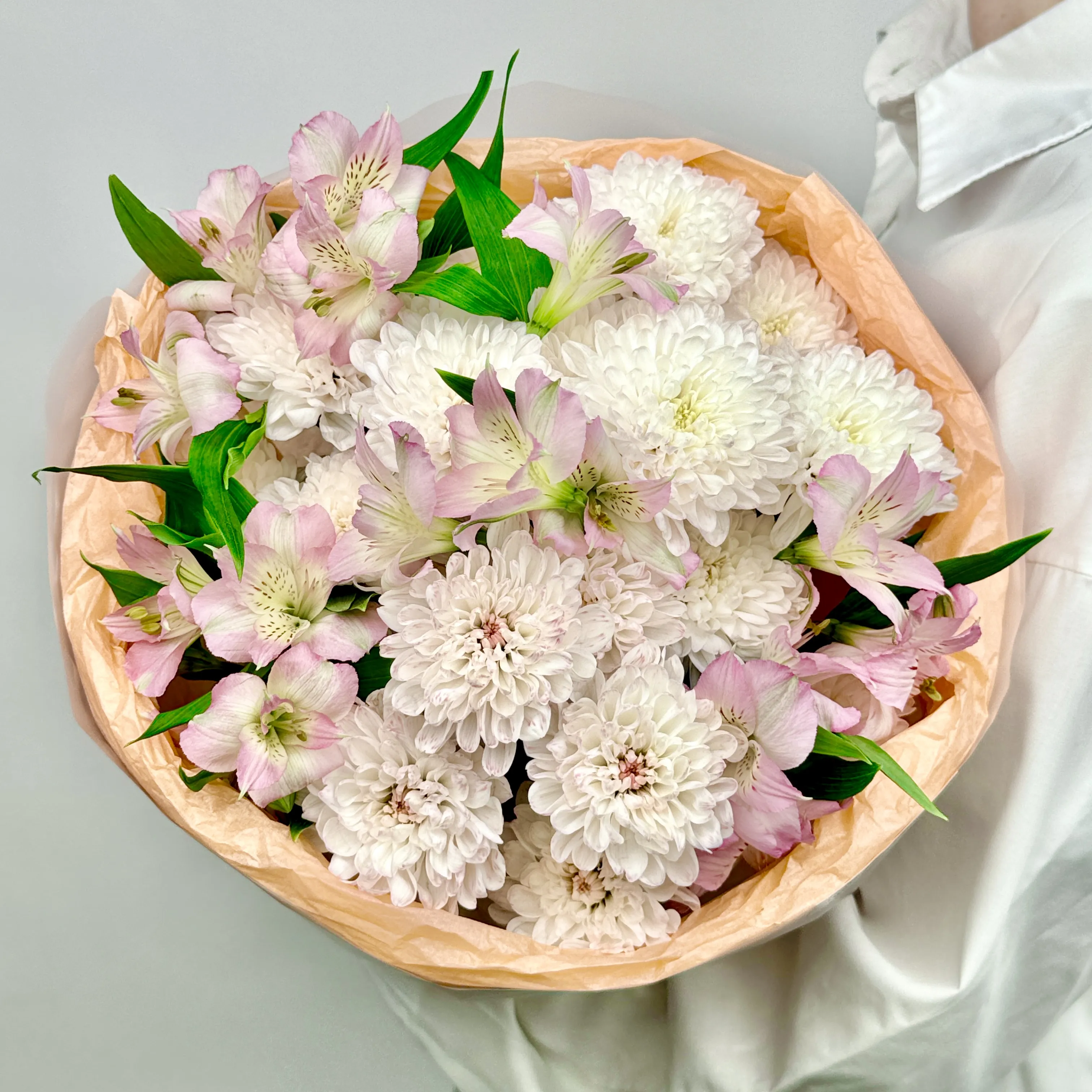 Мы стараемся собрать букет максимально похожим на фото. Возможны небольшие отличия в оттенках.