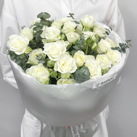 Состав: роза кустовая 9 шт., эвкалипт 2 шт.