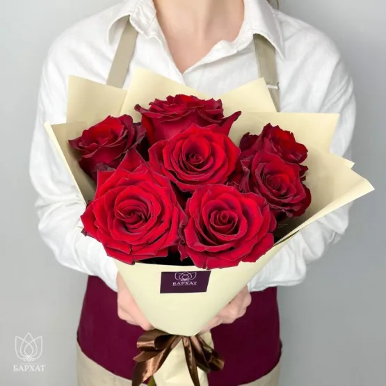 Монобукет из 7 красных роз №2