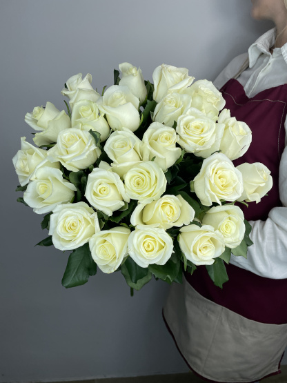 Букет из 25 белых роз под ленту